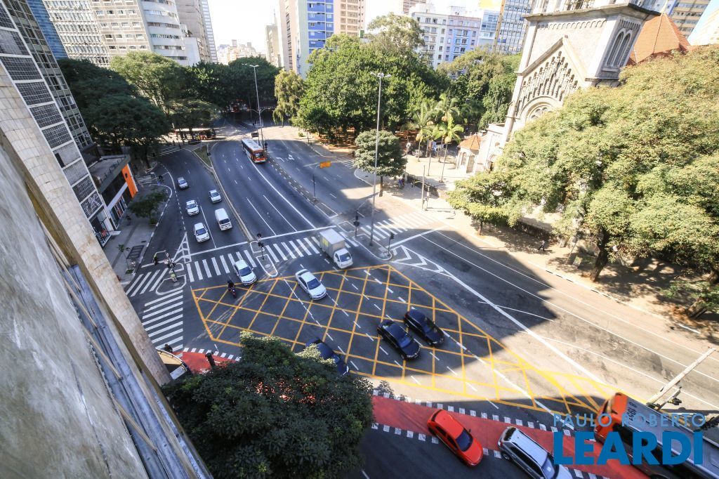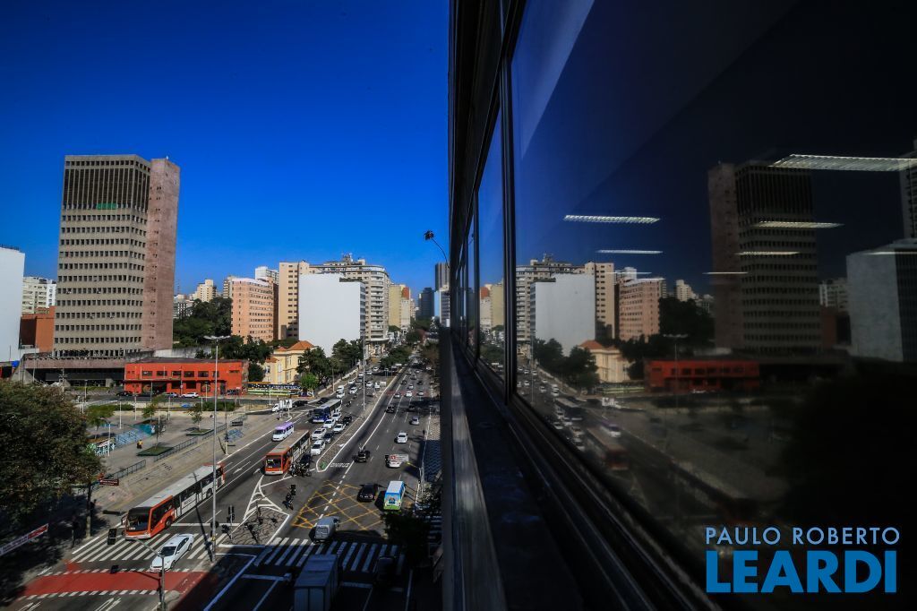 Prédio Monousuário com 2.900m² e 14 vagas de garagem no prédio ao lado. Composto de térreo + 6 pavimentos-tipo + terraço. Cada pavimento-tipo possui hall de distribuição para o Lado A(fundos) e Lado B(Consolação). 2 elevadores com capacidade para 6 pessoas cada e acesso do Térreo ao 6º andar.